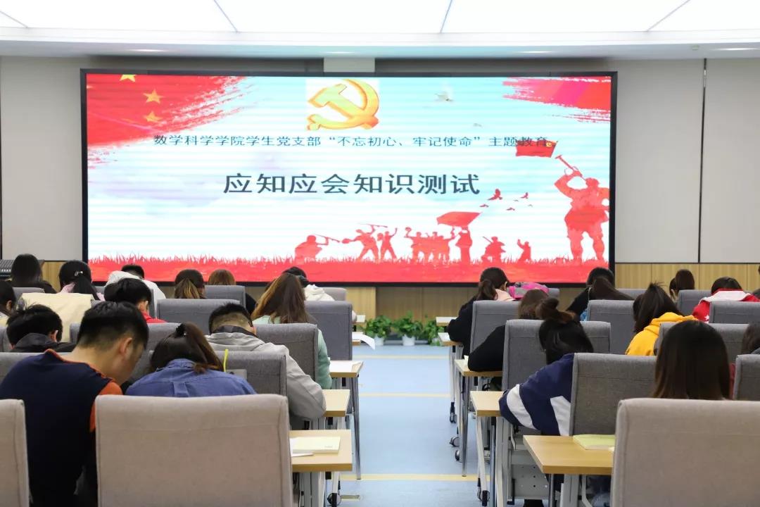 2019年10月19日,beat365官方网站学生党支部于学生事务中心进行“不忘初心,牢记使命”主题教育应知应会知识测试。beat365官方网站数学与应用数学学生党支部,信息与计算科学学生党支部及研究生党支部参加本次知识测试。数学与应用数学党支部书记皮建东、信息与计算科学学生党支部书记李帅组织学院学生党员、预备党员进行测试。