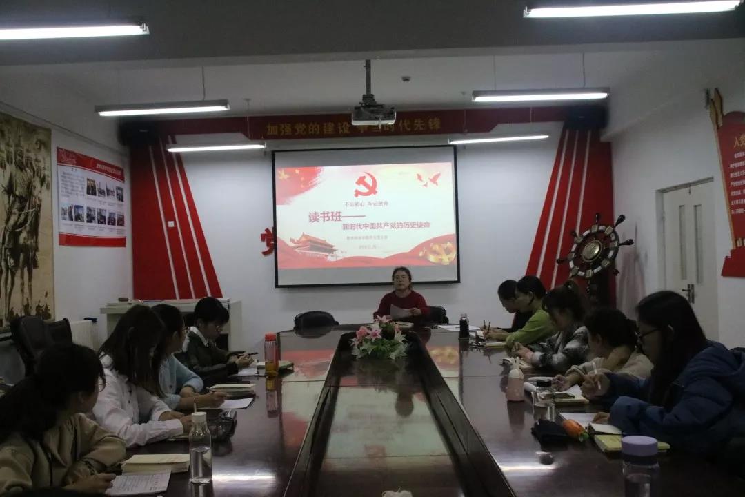 2019年11月26日,beat365官方网站学生党支部于学院楼会议室举办“不忘初心、牢记使命”主题教育读书班活动。beat365官方网站信息与计算科学学生党支部书记李帅带领各位学生党员、预备党员学习《习近平新时代中国特色社会主义思想学习纲要》一书。大家就中国共产党的历史使命展开讨论,并进行深入交流,进一步加深对习近平新时代中国特色社会主义思想的理解,真切认识到新时代中国共产党的历史使命。