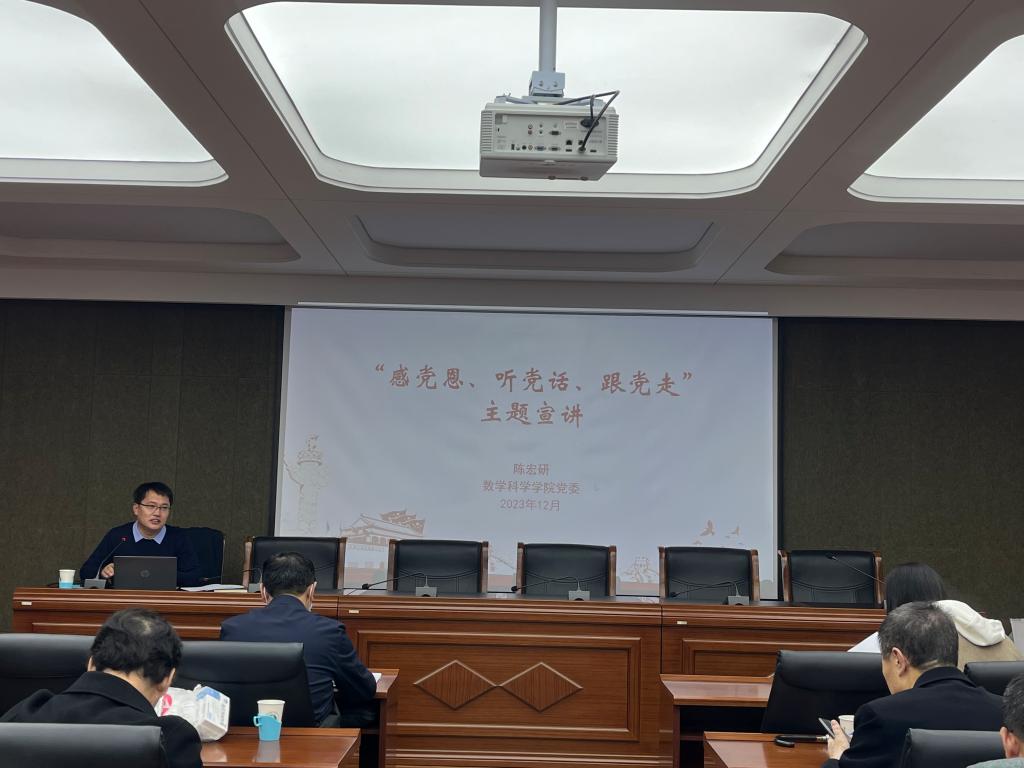 12月14日下午,beat365官方网站在赛罕校区文史类一号会议室举办“感党恩、听党话、跟党走”主题宣讲会,学院党委书记陈宏研面向学院全体教职工作了主题宣讲。