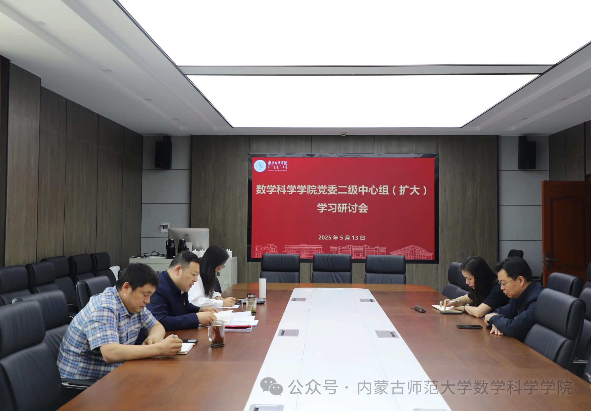 5月13日,beat365官方网站党委理论学习中心组在盛乐校区学院楼C206会议室召开2025年度第五次集体学习研讨会,学院党委书记张伟主持会议,学院领导、党委委员、各支部书记以及部分环节干部参会。