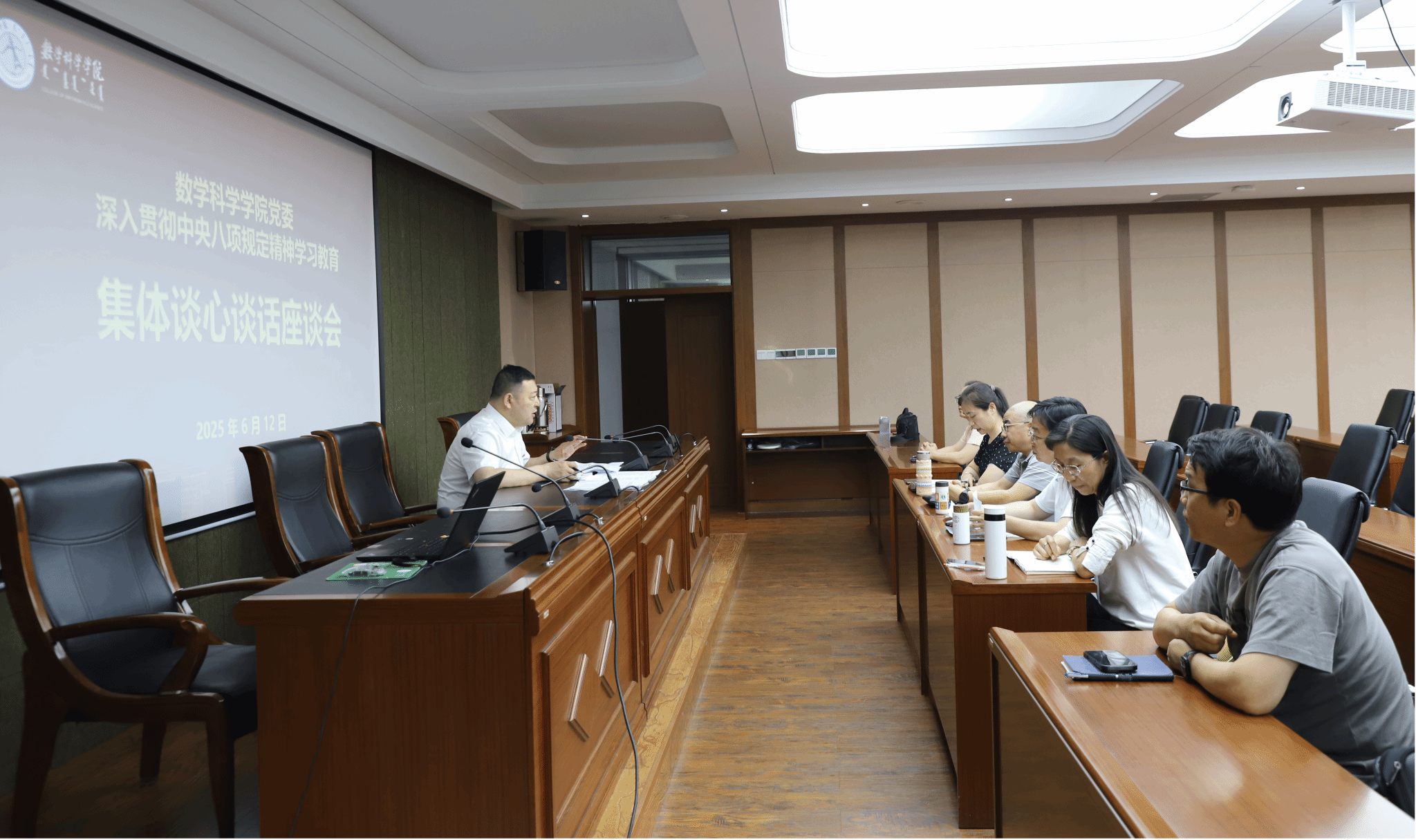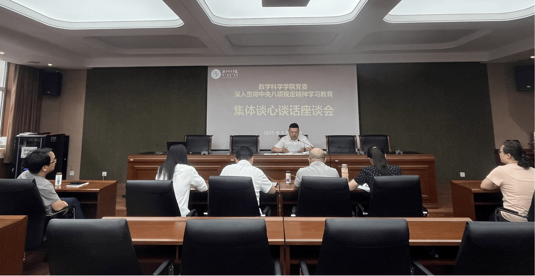 6月12日下午,beat365官方网站召开深入贯彻中央八项规定精神学习教育集体谈心谈话座谈会。学院党委书记张伟就集中整治违规吃喝问题,以座谈会的形式与班子成员、党委委员、支部书记进行了集体谈心谈话。
