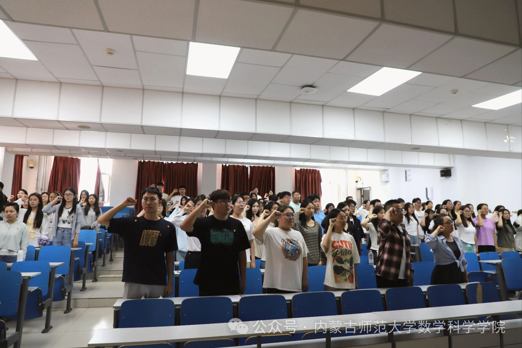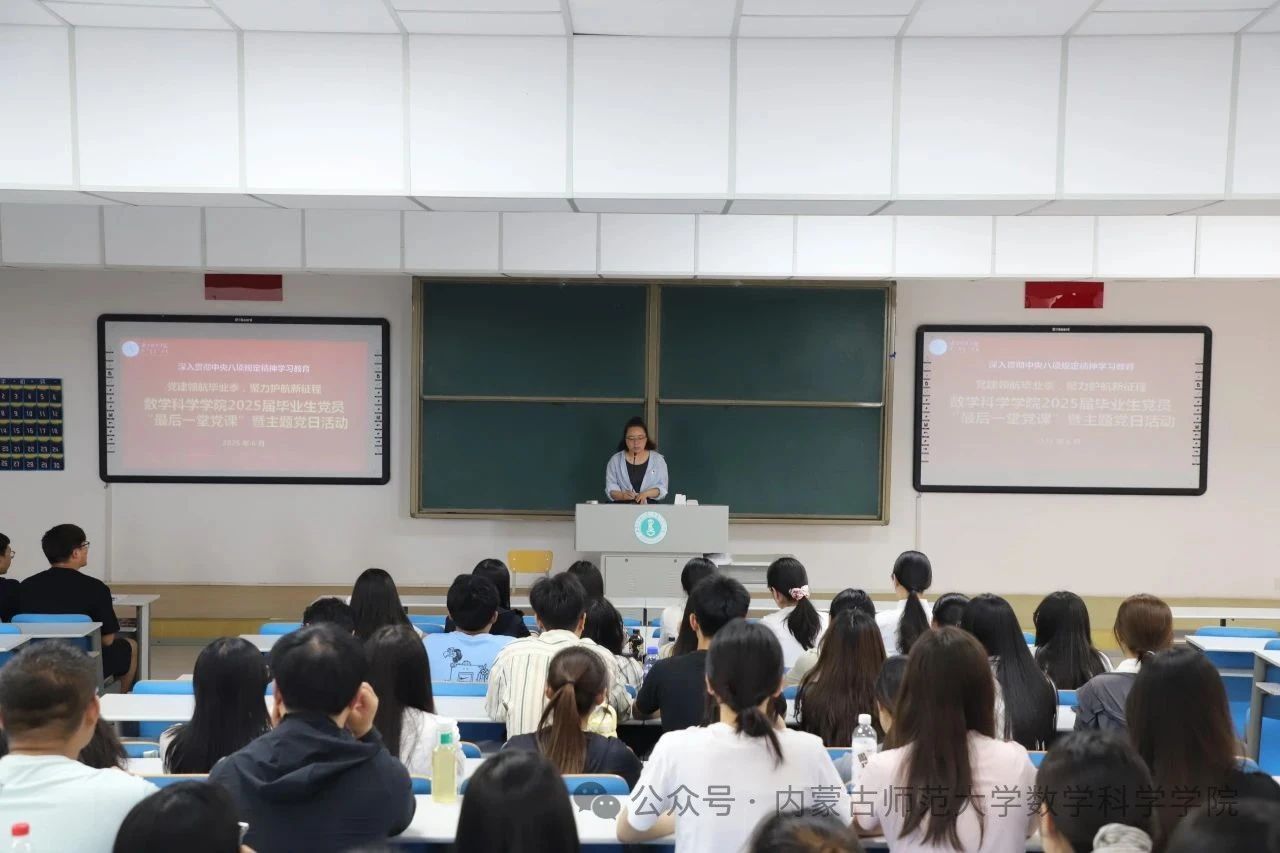 学生第一党支部书记阿茹罕立足深入贯彻中央八项规定精神学习教育,强调毕业生党员要带头践行勤俭节约作风,坚决抵制违规聚餐行为,将中央关于厉行节约、反对浪费的要求转化为具体行动。学生第二党支部书记刘沙沙围绕文明离校主题,系统讲解校园安全、毕业手续办理等注意事项;研究生党支部书记萨如拉从严守组织纪律高度,讲解了党团组织关系转接流程,强调党员组织生活的严肃性。活动最后,全体党员通过重温入党誓词强化政治身份认同,以铿锵誓言彰显新时代青年党员矢志不渝跟党走的坚定信念,为毕业征程注入红色动能。