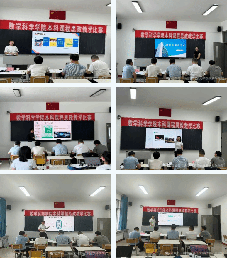 通过前期的预赛,选拔出了6位教师参加本次比赛。比赛以“说课+现场展示”双环节为核心,参赛教师通过系统性教学设计解析和实景教学,生动演绎数学逻辑与思政元素的深度融合,在课程中渗透辩证思维,在数学史案例中激发文化自信,在模型构建中融入家国情怀,充分展现课程思政的创新实践。