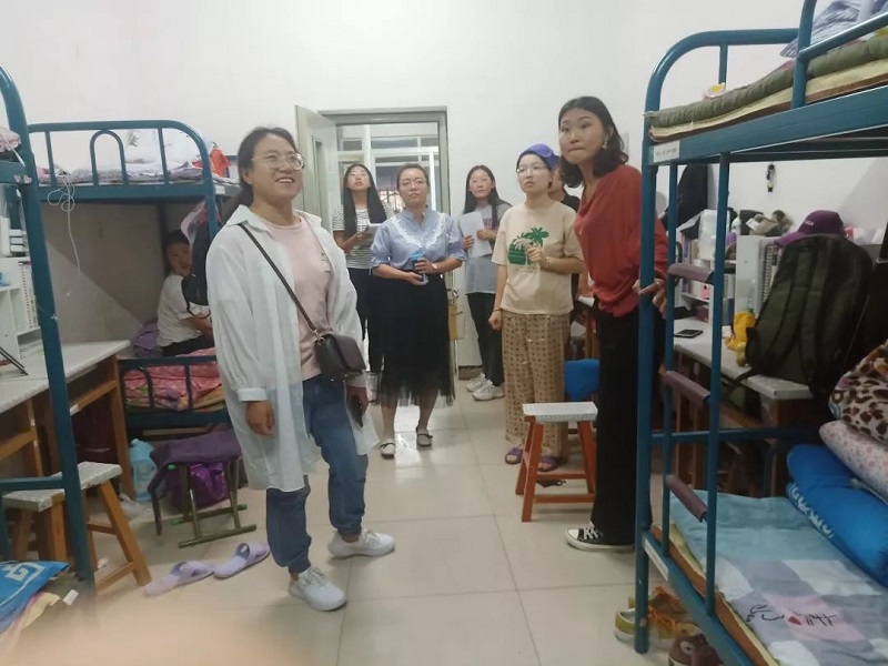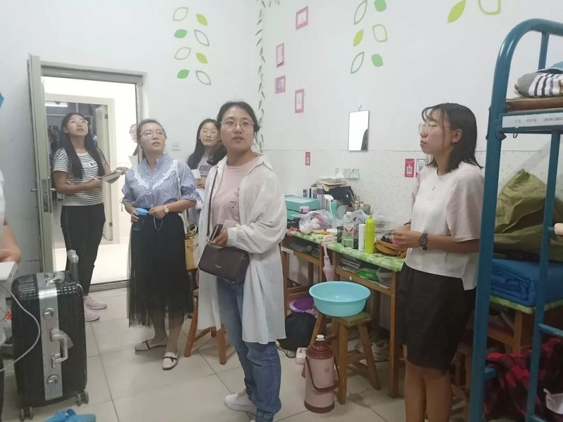 老师们询问各班学生返校情况,细心查看宿舍安全情况,并嘱咐同学们要注意宿舍内务卫生情况,为自己学习、生活营造良好氛围。