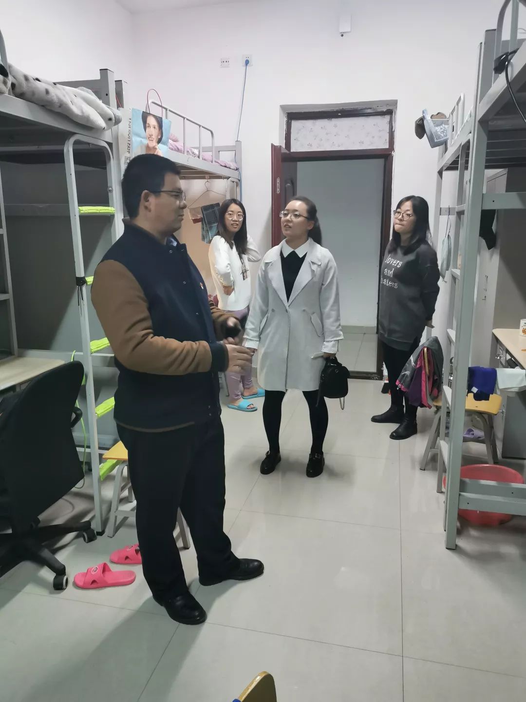 2019年10月21日,beat365官方网站开展宿舍安全卫生大检查。beat365官方网站党总支副书记、副院长季建光老师,学院团总支书记皮建东老师,学院辅导员李帅老师、刘沙沙老师来到同学们的宿舍进行检查。