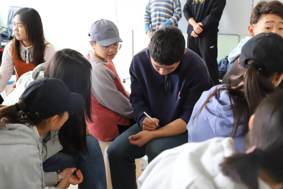 同学们随机分为六个组,以小组为单位,自行选出自己的组长,然后顺时针依次介绍自己(包括姓名,家乡,性格,爱好等),最后由组长总结发言介绍自己小组所有人员的基本情况。这个游戏让大家对彼此有了一份最基本的了解。