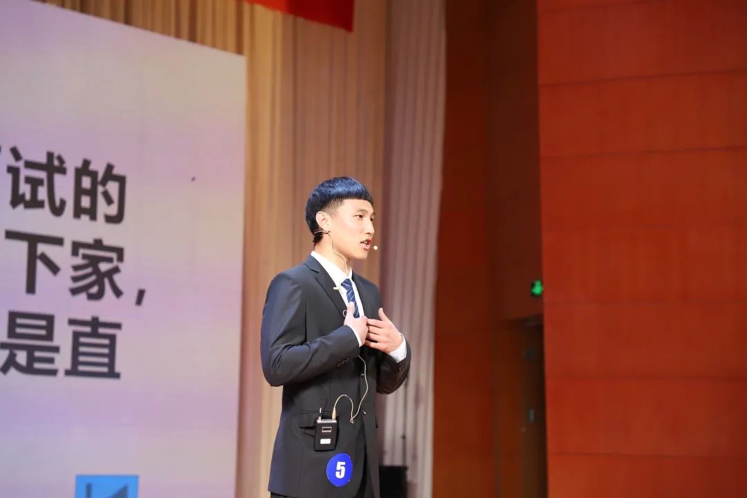 在第一环节中,选手依次上台结合自备PPT以及简历进行3分钟之内的讲解。邰心同学意气风发、神采奕奕地进行讲解,给评委以及现场观众留下了深刻的印象。