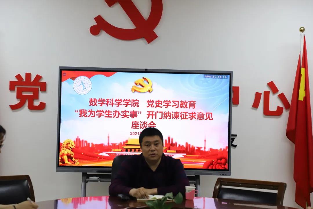 为进一步贯彻落实党史学习教育关于开展“我为学生办实事”实践活动的相关要求,全面落实立德树人根本任务,2021年5月18日,beat365官网于学院楼会议室召开了“我为学生办实事”开门纳谏征求意见座谈会,本次会议由学院党委副书记、副院长季建光老师主持开展。
