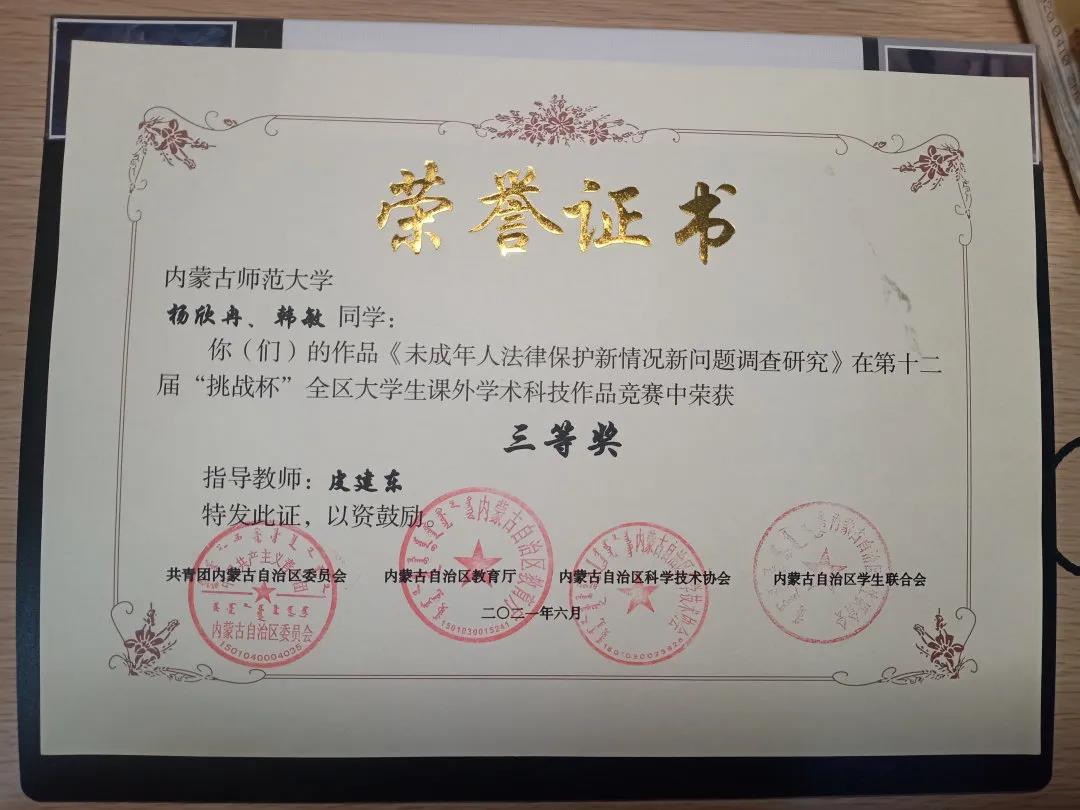 部分同学获奖证书