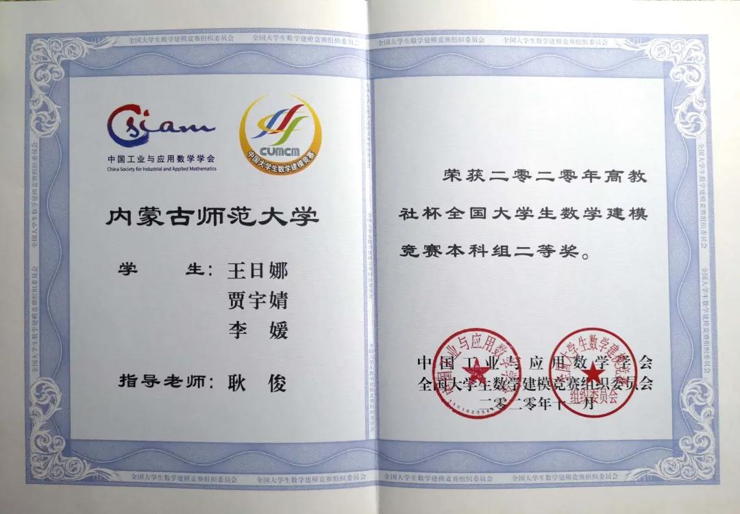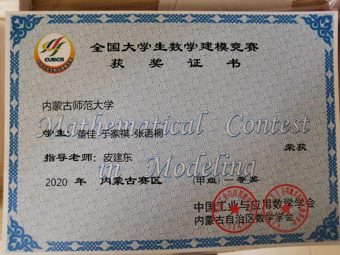 2020高教杯全国大学生数学建模竞赛beat365官网包揽全国二等奖2项,赛区一等奖10项,二等奖12项,三等奖8项。
