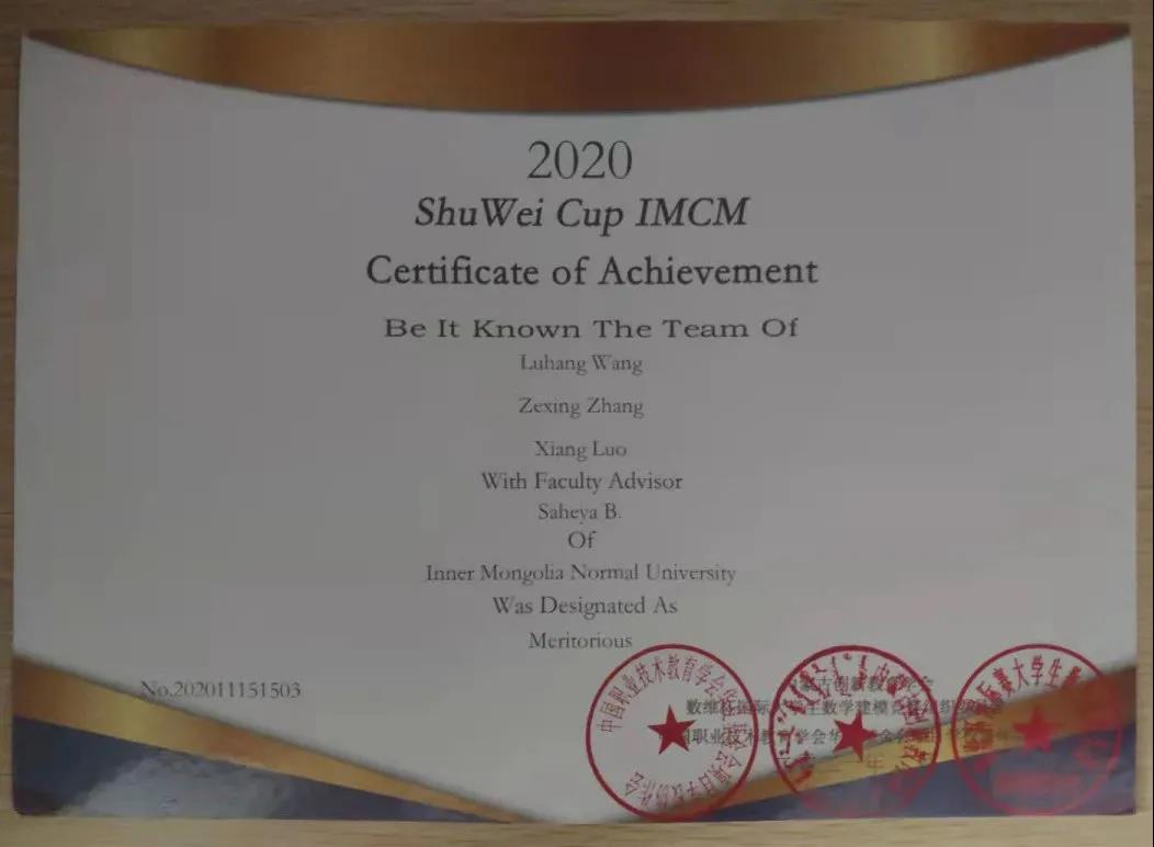 第五届数维杯大学生数学竞赛国际赛,beat365官网王路航、罗翔、张泽兴获得佳绩!