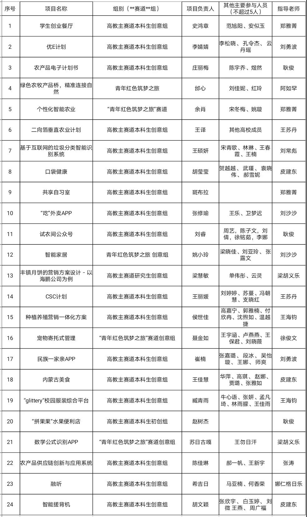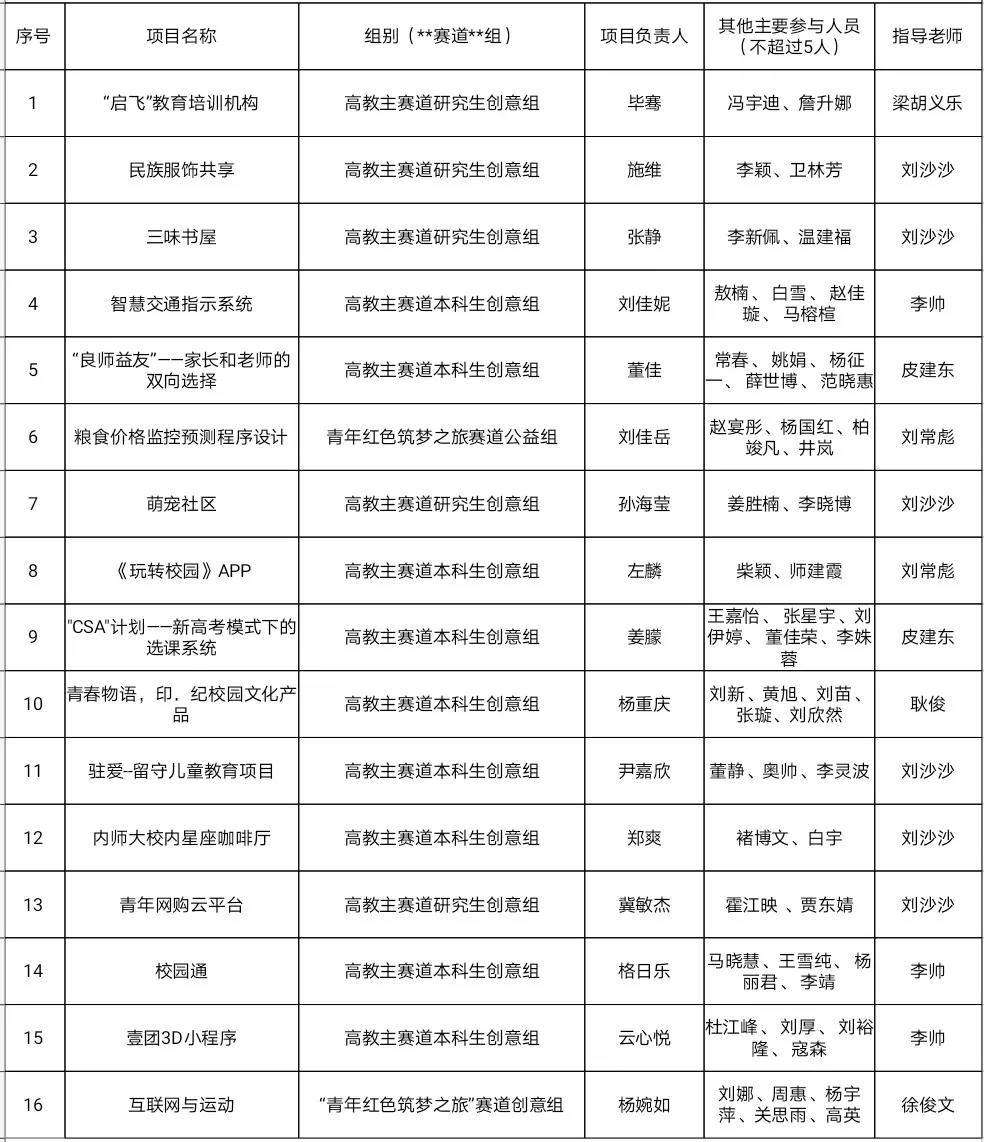 第七届中国国际"互联网+"大学生创新创业大赛beat365官方网站院赛初审名单: