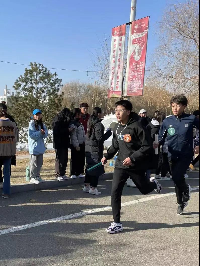 本次冬季越野赛以接力的方式绕师盛湖进行比赛。同学们在这寒风之中你追我赶,汗水滑落,浸湿衣裳,连空气中都充满了青春活力的跃动。