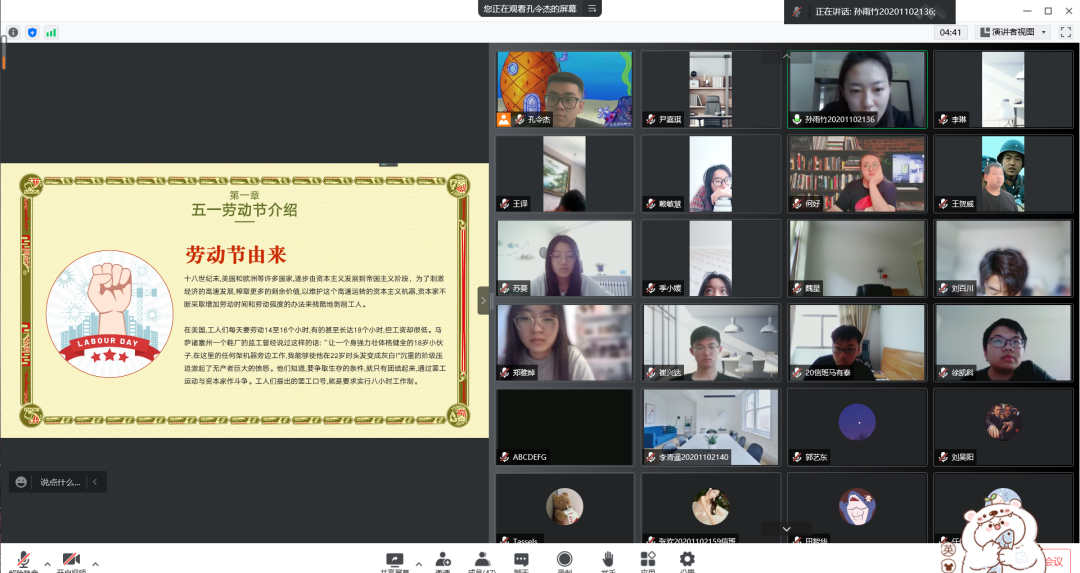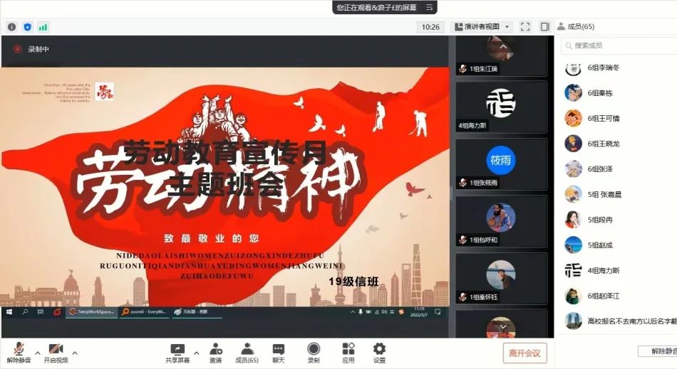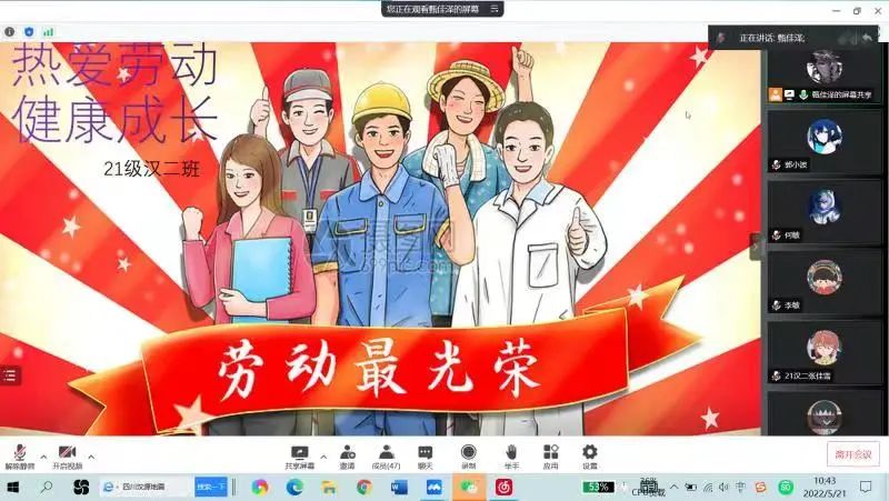 为充分发挥“五一”国际劳动节的宣传、教育、激励效应,引导广大学生崇尚劳动、热爱劳动、辛勤劳动、诚实劳动,beat365官网特组织各班学生开展“热爱劳动,健康成长”学生劳动教育主题班会。