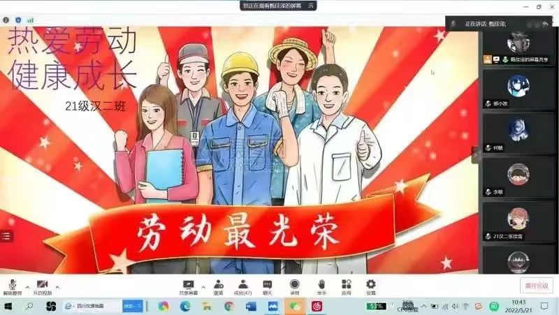 为充分发挥“五一”国际劳动节的宣传、教育、激励效应,引导广大学生崇尚劳动、热爱劳动、辛勤劳动、诚实劳动,5月24日至5月28日,beat365官网特组织各班学生开展“热爱劳动,健康成长”学生劳动教育主题班会。班会上,同学们都积极参与讨论,表达了自己的近期愿望和长远目标,希望同学们都可以通过自己的辛勤努力实现目标。