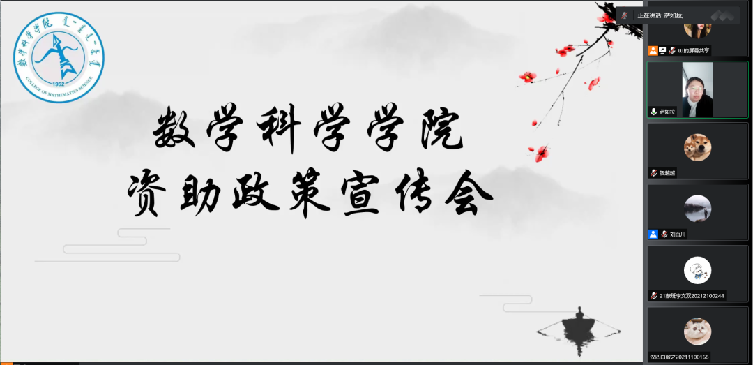 刘沙沙老师向各位同学们介绍的是本科生奖助贷减补政策,包括国家级、自治区级、校级的奖学金,国家助学金、减免学费、勤工助学以及各项单项奖学金(叶圣陶奖学金、乌兰夫奖学金、珍云奖学金等)。