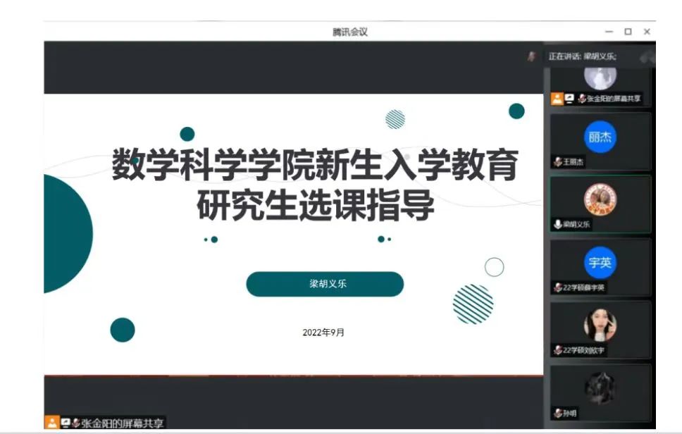 2022年9月4日下午14:30-16:00,学院教学与科研办公室副主任,研究生教学秘书梁胡义乐老师进行了“研究生选课指导”宣讲。梁胡义乐老师向同学们介绍了课程设置、学分要求、学术活动、学位论文等相关问题,带领新生了解数学一级学科硕士研究生培养方案,并对培养方案中所提到的问题做出了具体要求,让同学们做好记录。老师强调同学们要认真对待各项考试,并鼓励同学们努力学习,提升专业知识,掌握专业技能,成就精彩人生!
