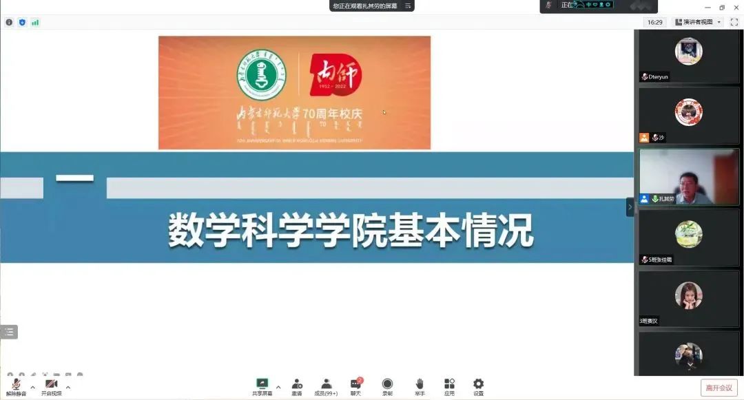 2022年9月3日上午10:30—12:00,学院院长扎其劳老师从beat365官方网站基本情况和数学学科发展概况两方面介绍了学院发展历程,向研究生新生开展入学教育讲座,并对研究生新生寄予厚望:我们每一个人都是逐梦人、追梦人和圆梦人;只要我们勠力同心,奋发有为,真抓实干,中华民族伟大复兴的中国梦就一定会实现!