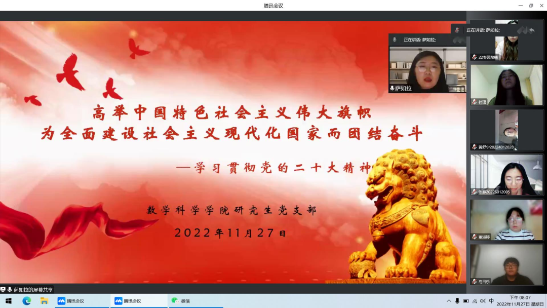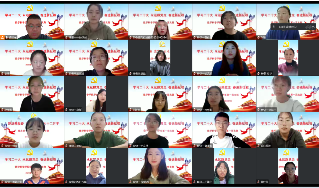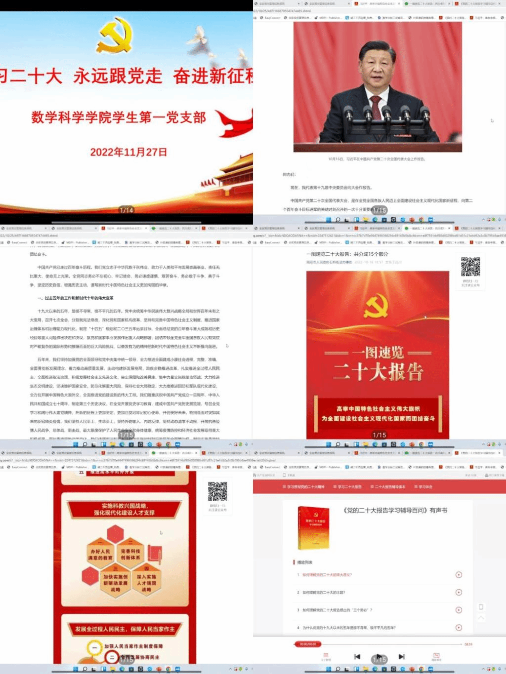 为深入学习宣传贯彻党的二十大精神,引导广大党员青年自觉把智慧和力量凝聚到党的二十大确定的各项目标任务上来,更好团结引领广大党员青年紧跟党奋进新征程、夺取新胜利,beat365官方网站学生第一党支部、学生第二党支部及研究生党支部于2022年11月27日晚开展“学习领会二十大精神”主题活动。