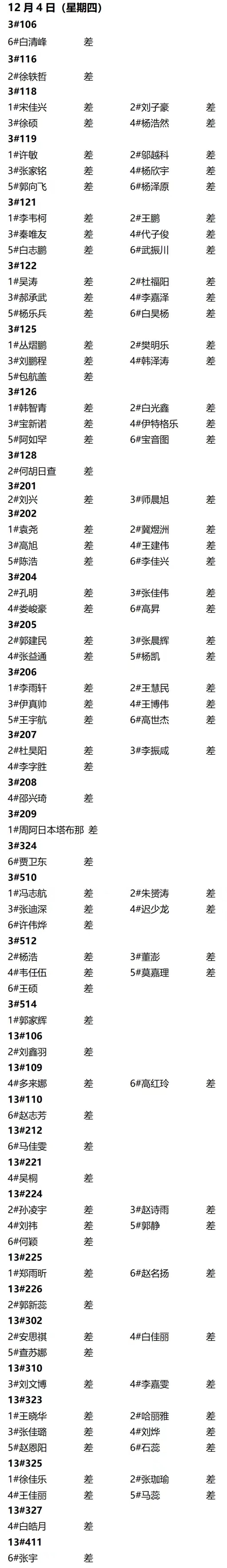 第十六周夜不归宿情况