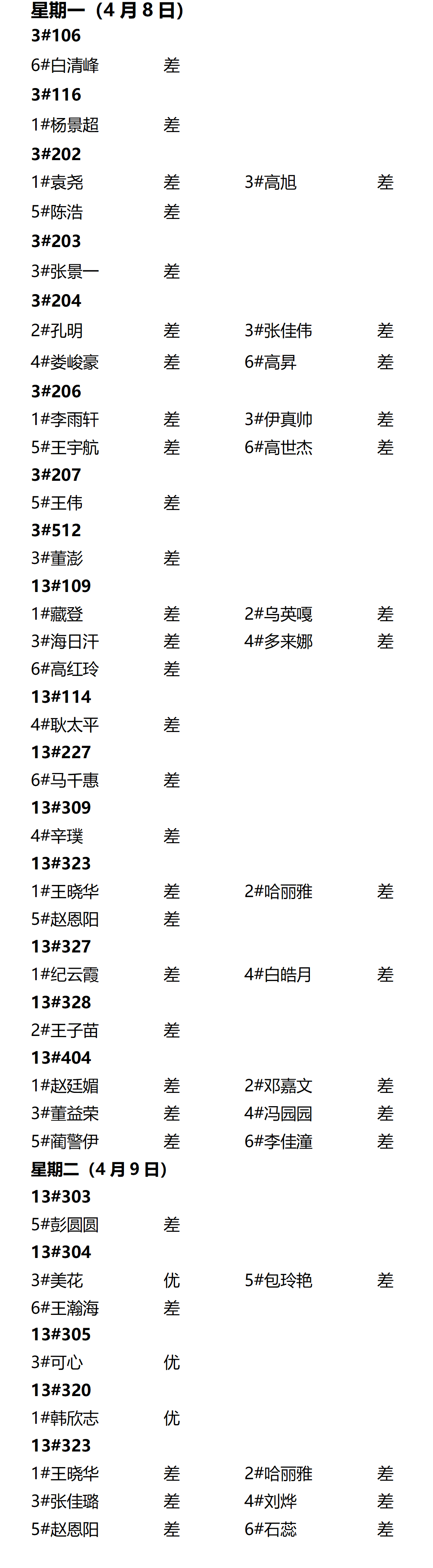 beat365官方网站2023——2024年度第二学期第七周通报情况