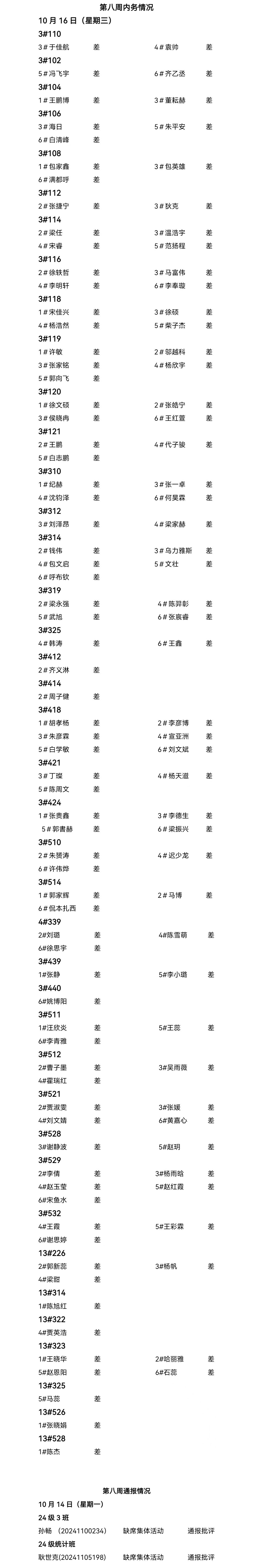 beat365官方网站2024——2025年度第一学期第八周通报情况