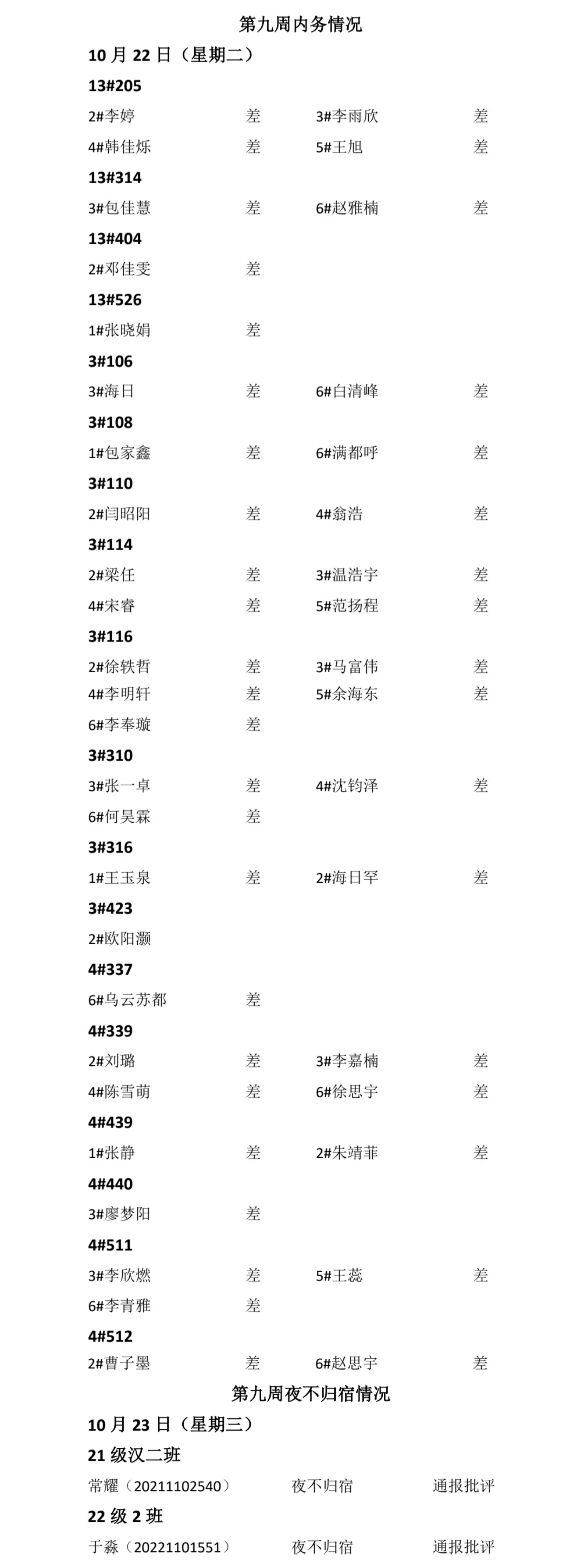 beat365官方网站2024——2025年度第一学期第九周通报情况