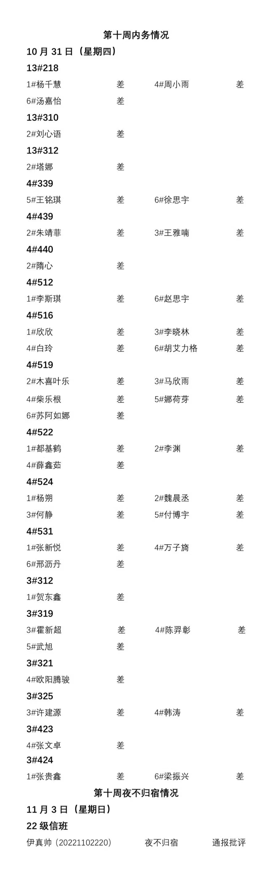 beat365官方网站2024——2025年度第一学期第十周通报情况