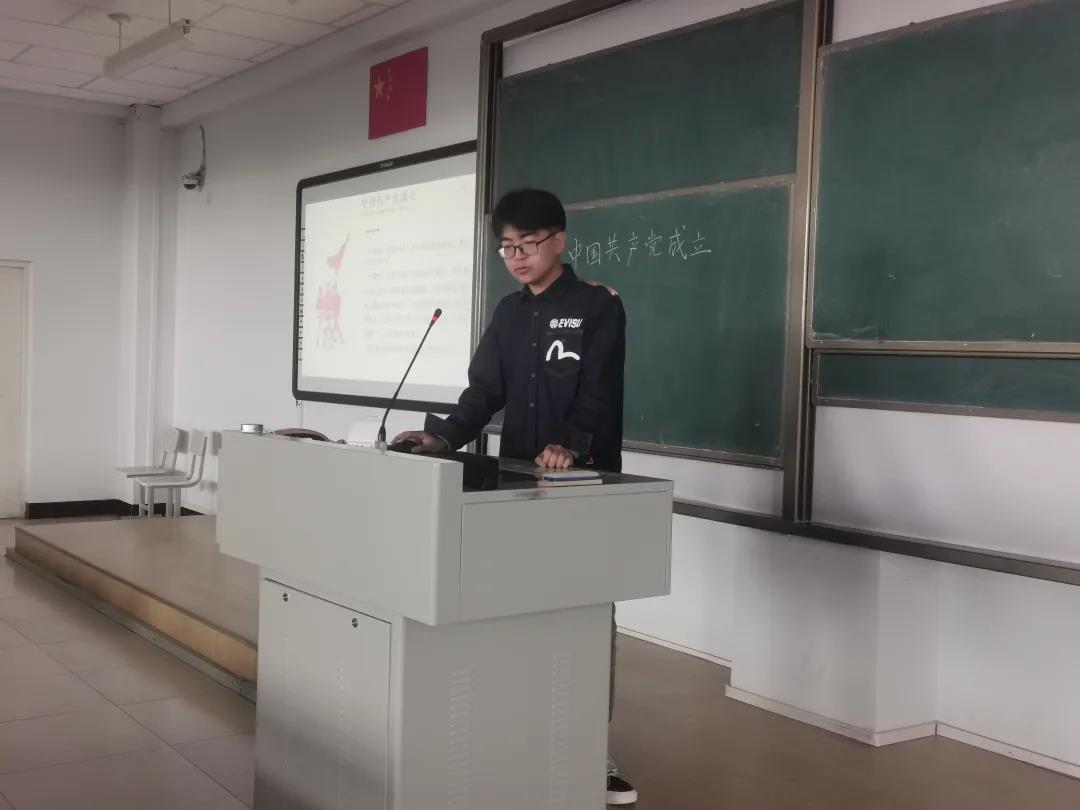 18级信息三班于科技楼405教室组织开展了“学习党史”团日活动。活动中由组织委员讲读中国共产党建党历程。同学们积极参与认真聆听。