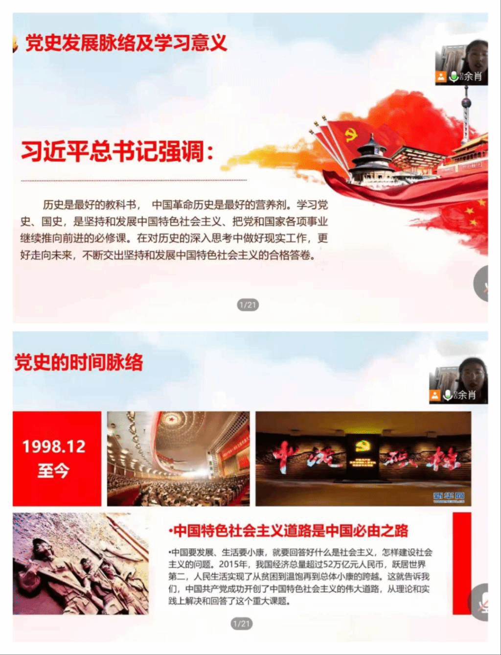 18级信息一班采取线上模式,以云端会议、知识问答、搜索公众号相关文章等形式,了解中国共产党100年的光辉历程。
