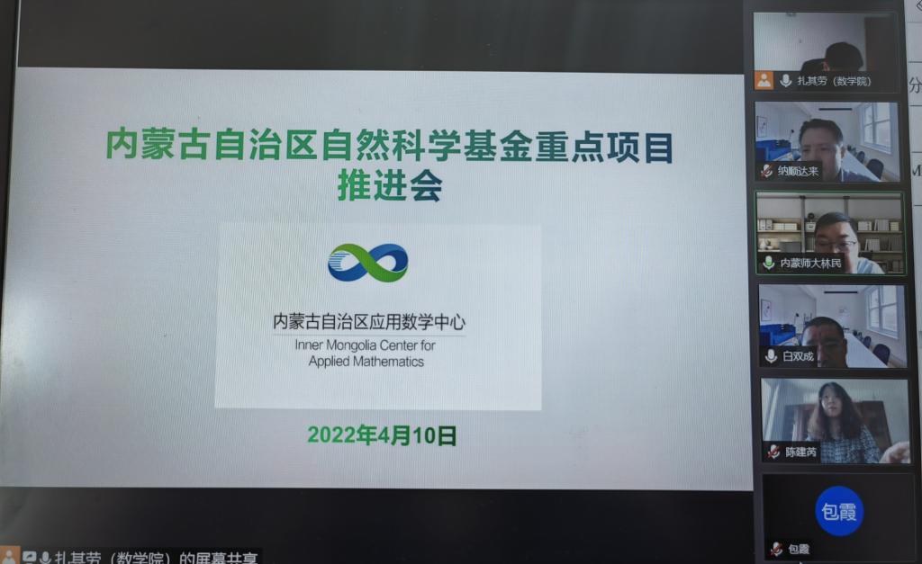 4月10日上午,内蒙古自治区应用数学中心以线上的形式召开“基于数据驱动的蒙医尿诊体系健康监测模型”的重点项目推进会。内蒙古自治区国际蒙医医院副院长纳顺达来带领的团队,陕西师范大学陈建芮教授,我校beat365官方网站相关负责人员,计算机科学技术学院院长及课题组相关人员参加本次会议。会议由扎其劳院长主持。