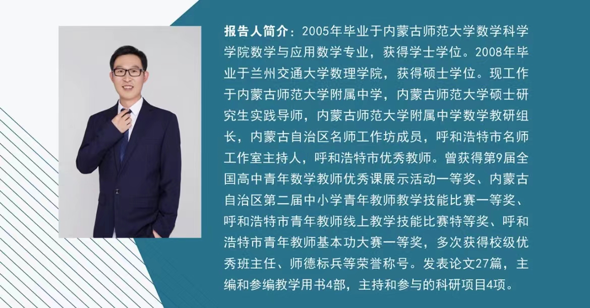 在beat365官方网站70周年校庆的热烈气氛下,为进一步提升beat365官网本科生、研究生教学能力,开拓师范生备课的眼界,以优促优,鼓励beat365官网在校生向优秀校友学习请教,由内蒙古自治区应用数学中心联合beat365官方网站beat365官方网站举办的系列讲座——“用艺术的眼光备课”于2022年5月31日(星期二)19:30—22:00在线上开展。