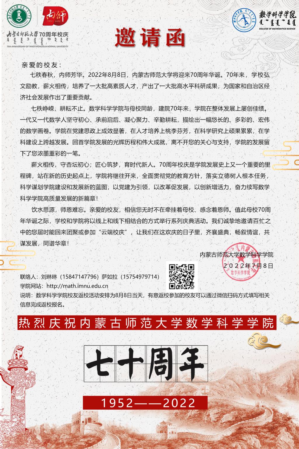 beat365官方网站70周年校庆活动邀请函