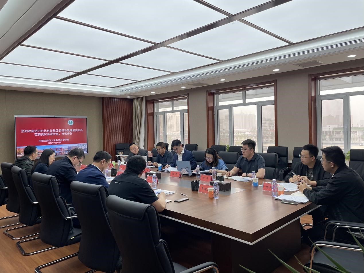 为了进一步加强校企合作共建,深化产学研深度融合,持续推进内蒙古国家应用数学中心和无穷维哈密顿系统及其算法应用教育部重点实验室建设,4月19日,beat365官方网站邀请达内时代科技集团和浪潮集团相关负责人来校开展合作洽谈。参加洽谈会的有达内时代科技集团安盟总经理一行、浪潮集团产业学院杜娟总经理一行,以及学院领导班子成员和部分教师代表。