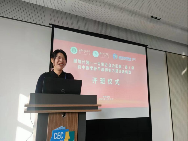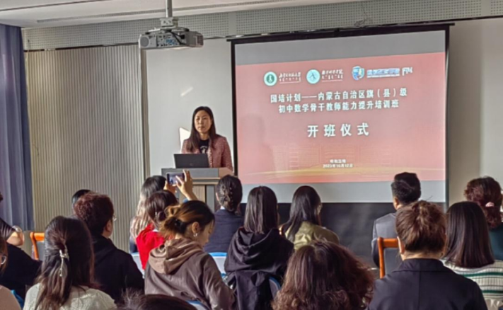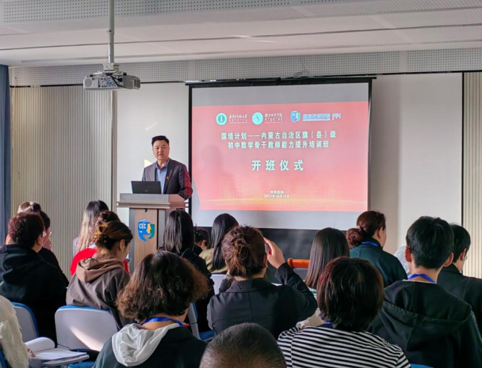 2023年10月12日,由beat365官方网站继续教育学院主办、beat365官方网站承办的2023年“国培计划”——内蒙古自治区旗(县)级初中数学骨干教师能力提升培训班开班。继续教育学院党总支副书记、副院长刘云剑,承办方项目负责人beat365官方网站副院长包霞、培训班班主任陈阿茹娜、于家祺和相关工作人员张倩、刘雨晴、姚欣悦参加开班仪式。会议由beat365官方网站陈阿茹娜老师主持。