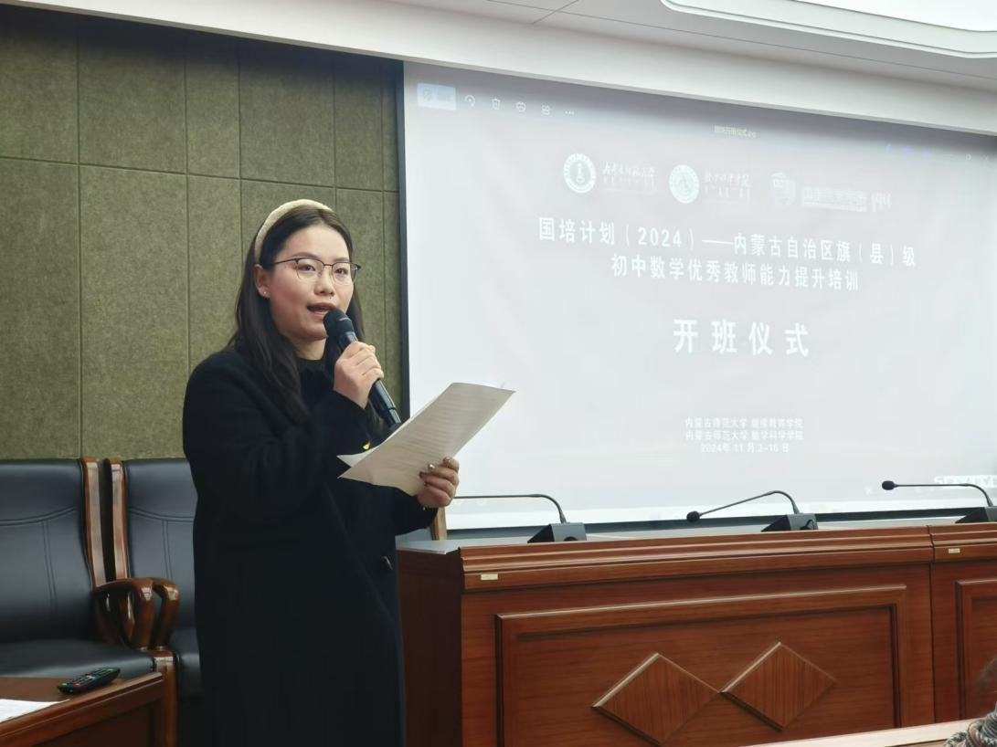 11月4日,由beat365官方网站继续教育学院主办、beat365官方网站承办的2024年“国培计划”——内蒙古自治区旗(县)级初中数学优秀教师能力提升培训班正式开班。beat365官方网站党委书记张伟、副院长萨和雅、华东师范大学beat365官方网站鲍建生教授、beat365官方网站科学技术史研究院代钦教授、beat365官方网站李春兰教授、班主任老师陈阿茹娜、郑佳璇以及培训班全体学员参加了开班仪式。会议由beat365官方网站郑佳璇博士主持。