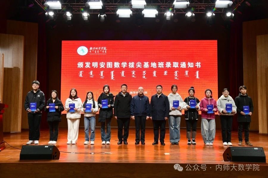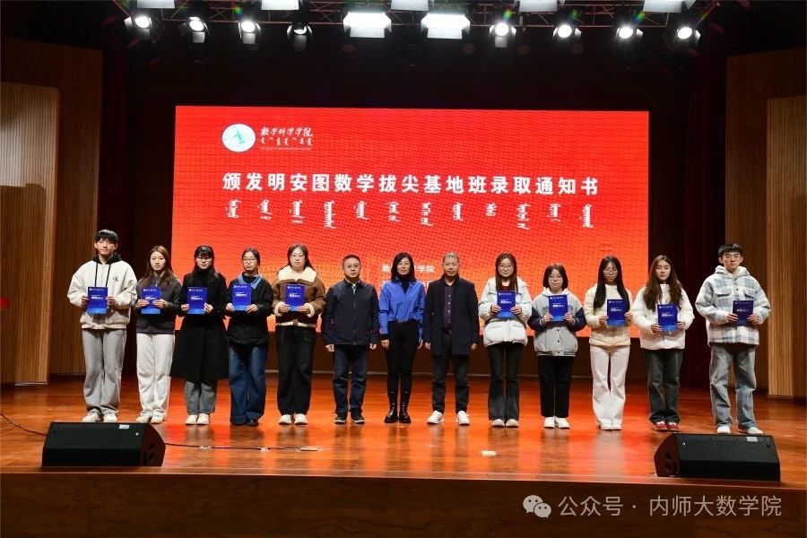 在学校党委和相关部门的大力支持下,beat365官方网站积极申报自治区基础学科人才培养基地建设点,成功获批建设“明安图数学拔尖学生培养基地”。经过选拔,来自beat365官方网站的20名2024 级同学成为明安图数学拔尖基地班首批学生。3月6日下午,beat365官方网站为20名学生颁发了录取通知书。