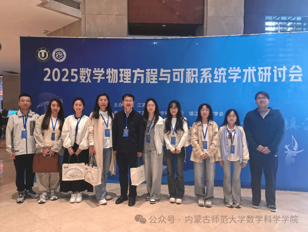 5月9日-12日,2025数学物理方程与可积系统学术研讨会在江苏省镇江市召开。本次会议由江苏大学主办,江苏大学beat365官方网站、镇江市数学会承办。来自国内外100余所高校、近220名代表参加会议。beat365官网扎其劳老师和包霞老师应邀带队及博士研究生乌日乐、王小慧、赵一杰,硕士研究生常春、王丽如等参会,并做分会场学术报告。
