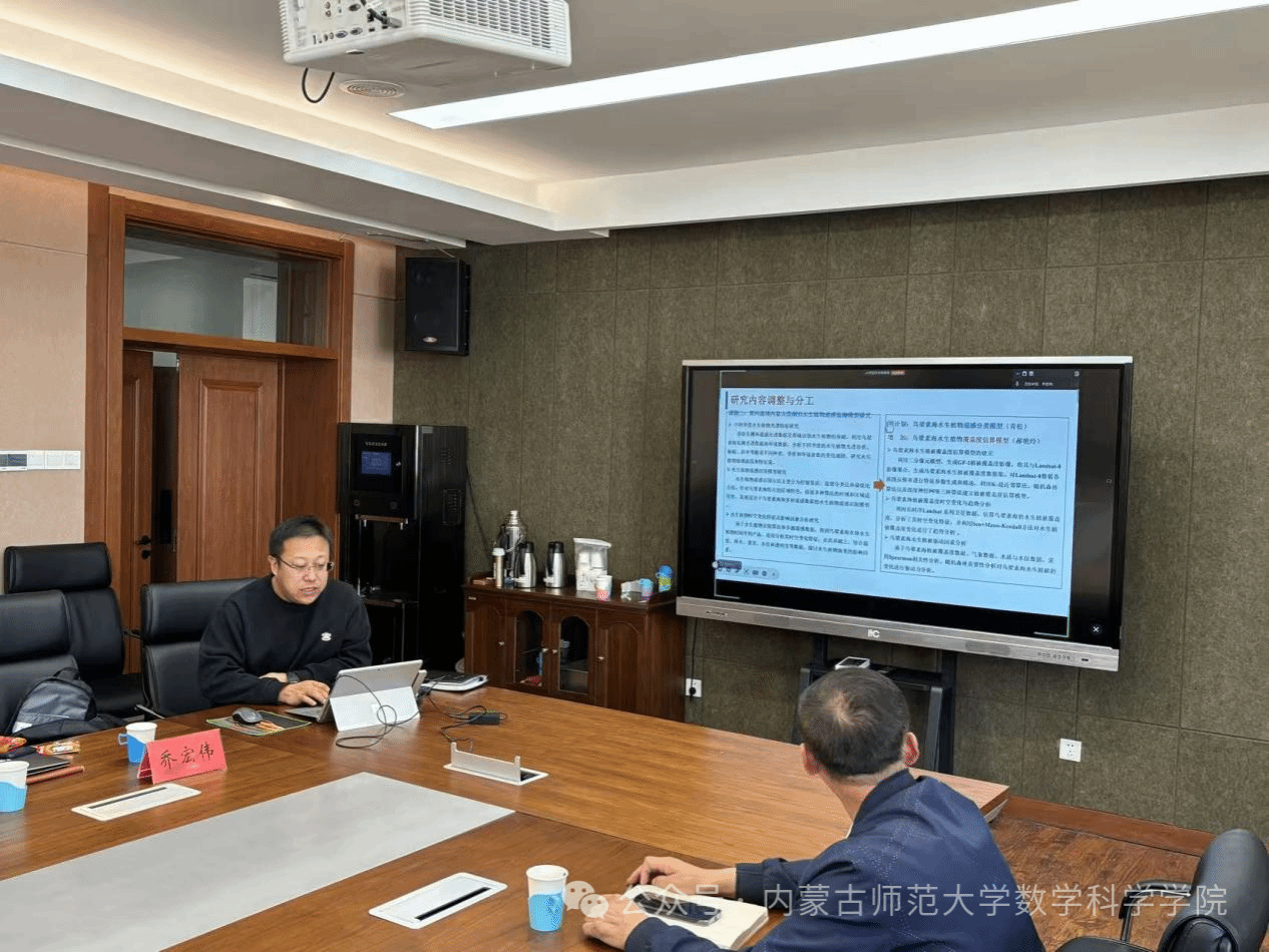 5月15日,第二批内蒙古自治区应用数学中心(以下简称中心)自主研究重点项目结题评审会与数学一流学科科研专项项目中期检查会议在赛罕校区顺利召开。中国石油大学(华东)、自然资源部第一海洋研究所张杰研究员,beat365官方网站科技处处长咏梅教授、研究生院原院长刘官厅教授、地理科学学院原院长包玉海教授及beat365官方网站党委张伟书记、扎其劳院长、包霞副院长出席了本次会议。来自内蒙古大学、内蒙古工业大学、内蒙古财经大学的中心自主研究重点项目组成员及部分一流学科科研专项项目负责人参加了本次会议,会议由包霞副院长主持。