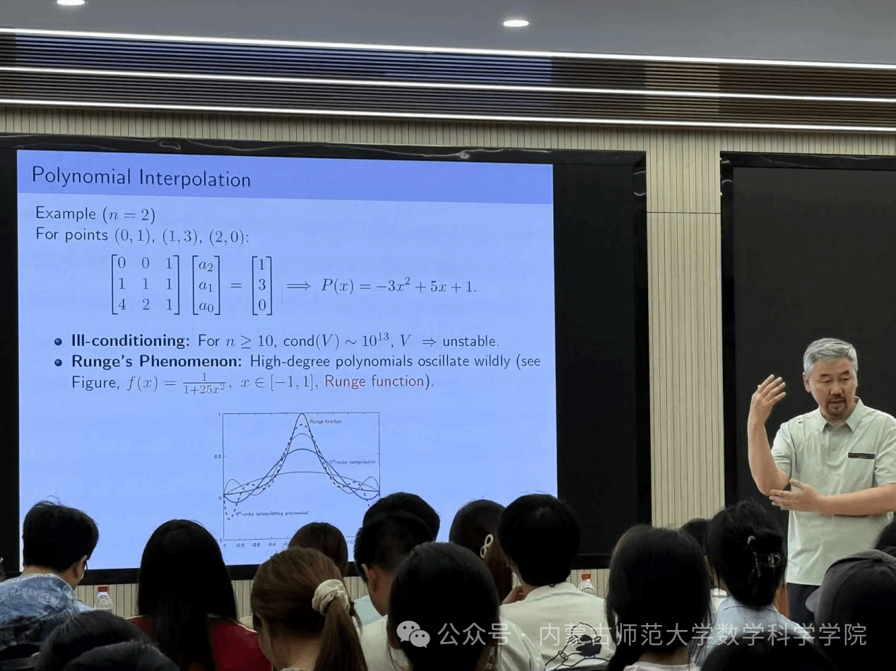 讲座特别关注了这些算法在实际问题中的广泛应用。教授指出,拉格朗日插值和多项式插值不仅能够帮助解决线性代数中的矩阵问题,还能用于非线性方程组的迭代求解。通过讲解这些核心算法,教授帮助同学们更好地理解了数学建模中的数值计算技巧,并激发了大家深入探讨数学模型和算法应用的兴趣。