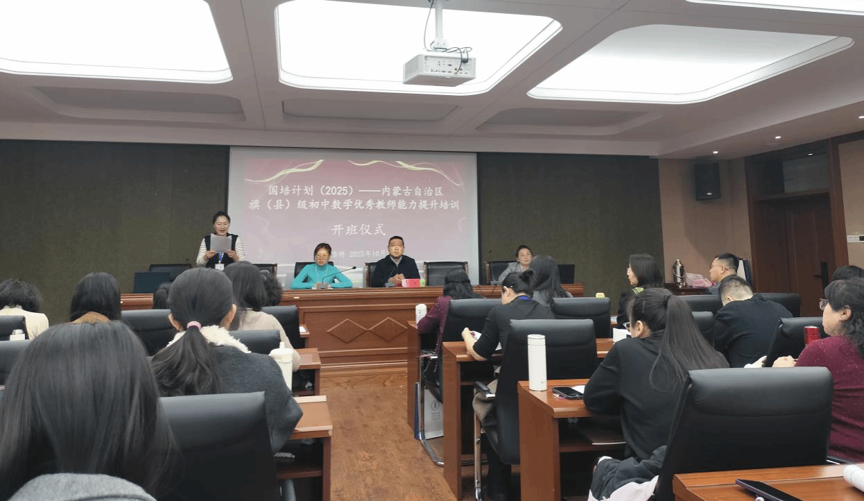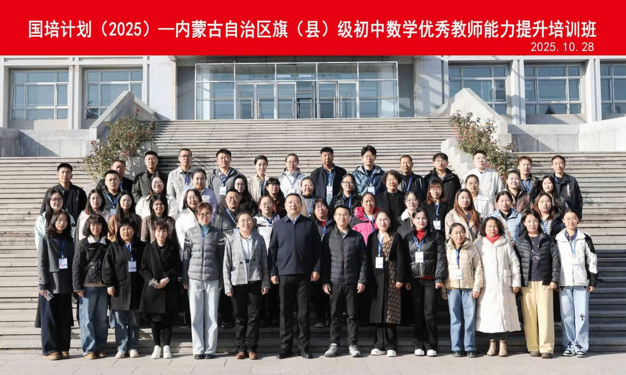 10月28日,由beat365官方网站继续教育学院主办、beat365官方网站承办的2025年“国培计划”——内蒙古自治区旗(县)级中学优秀教师能力提升培训-初中数学培训班正式开班。beat365官方网站党委书记张伟、beat365官方网站教师及培训班班主任娜仁格日乐、楚鑫、郑佳璇以及培训班全体学员参加了开班仪式。会议由beat365官方网站郑佳璇老师主持。