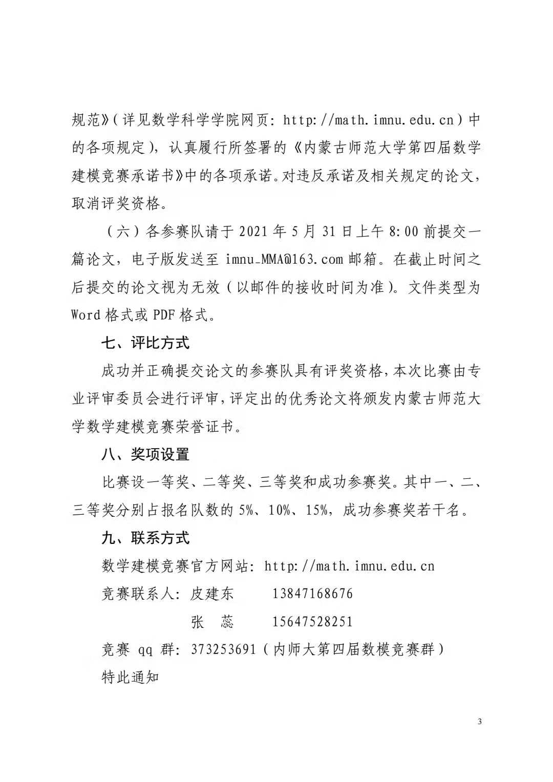 关于举办第四届数学建模竞赛的通知