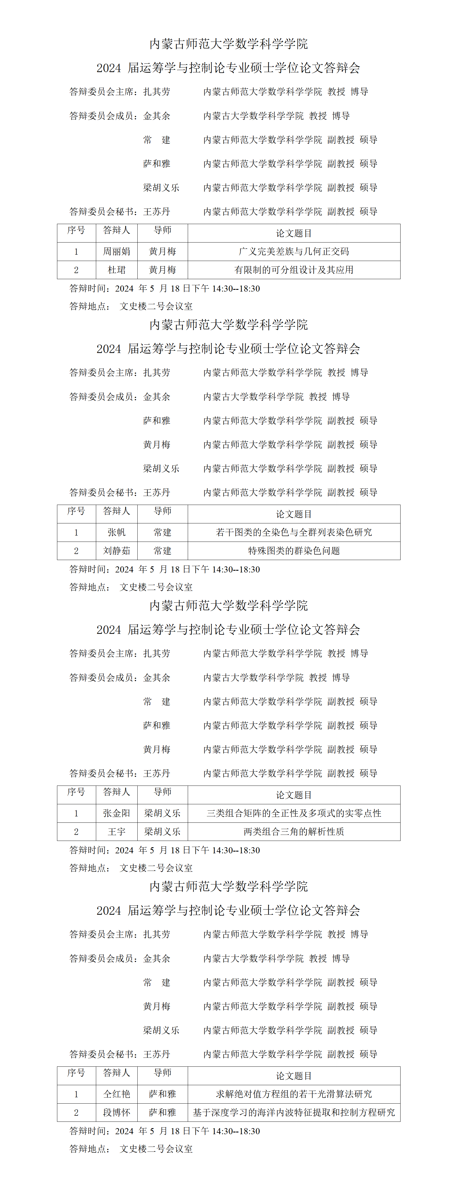 2024届数学专业硕士学位论文答辩会(三)