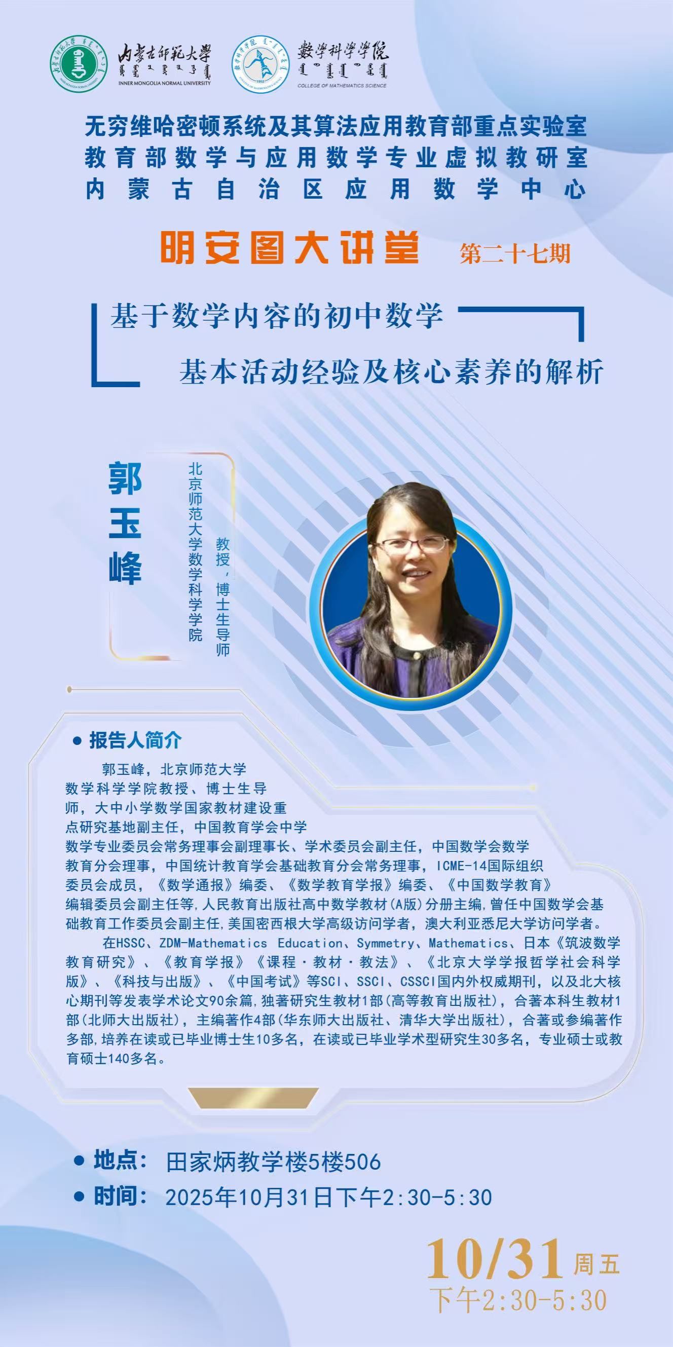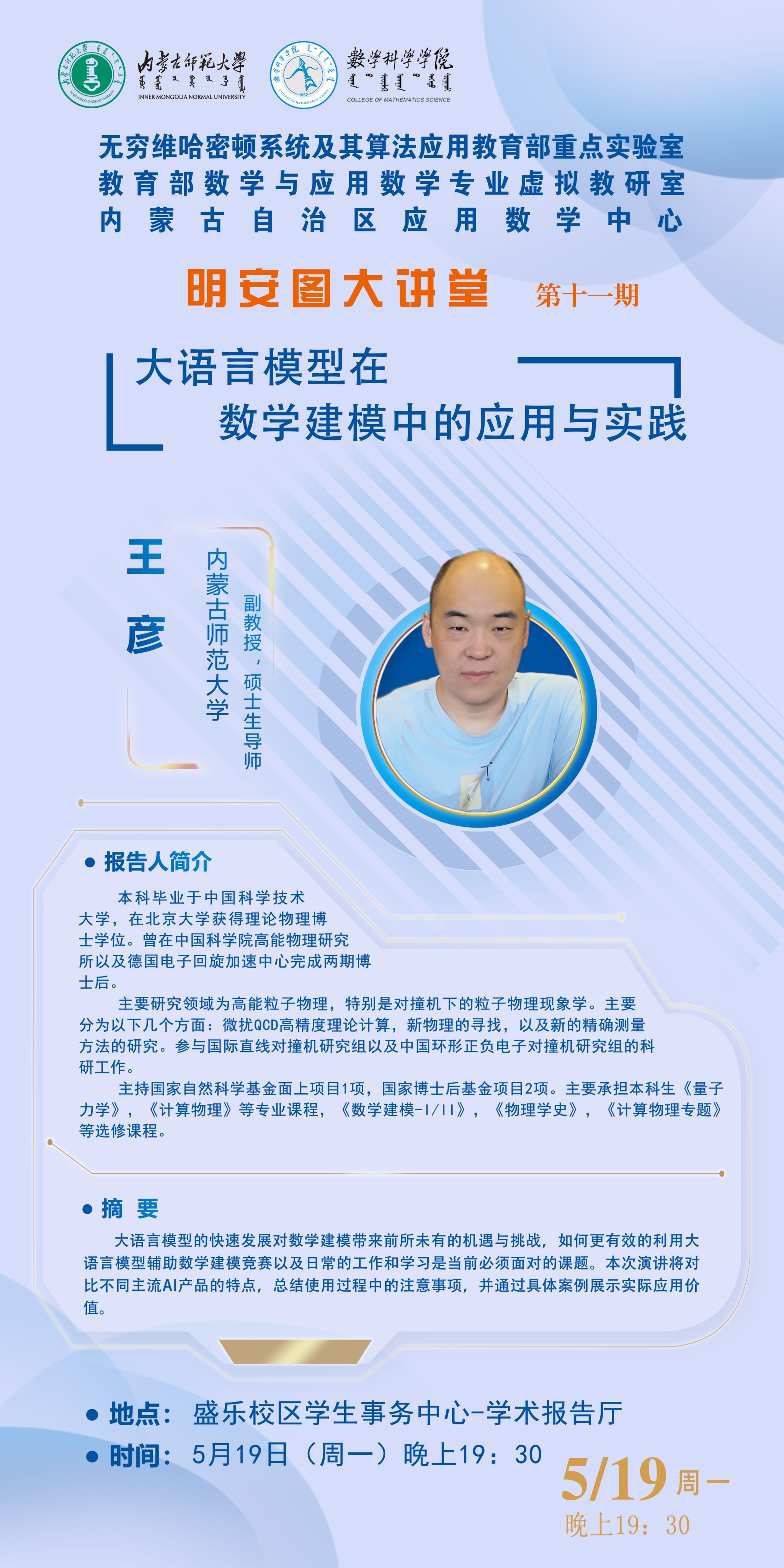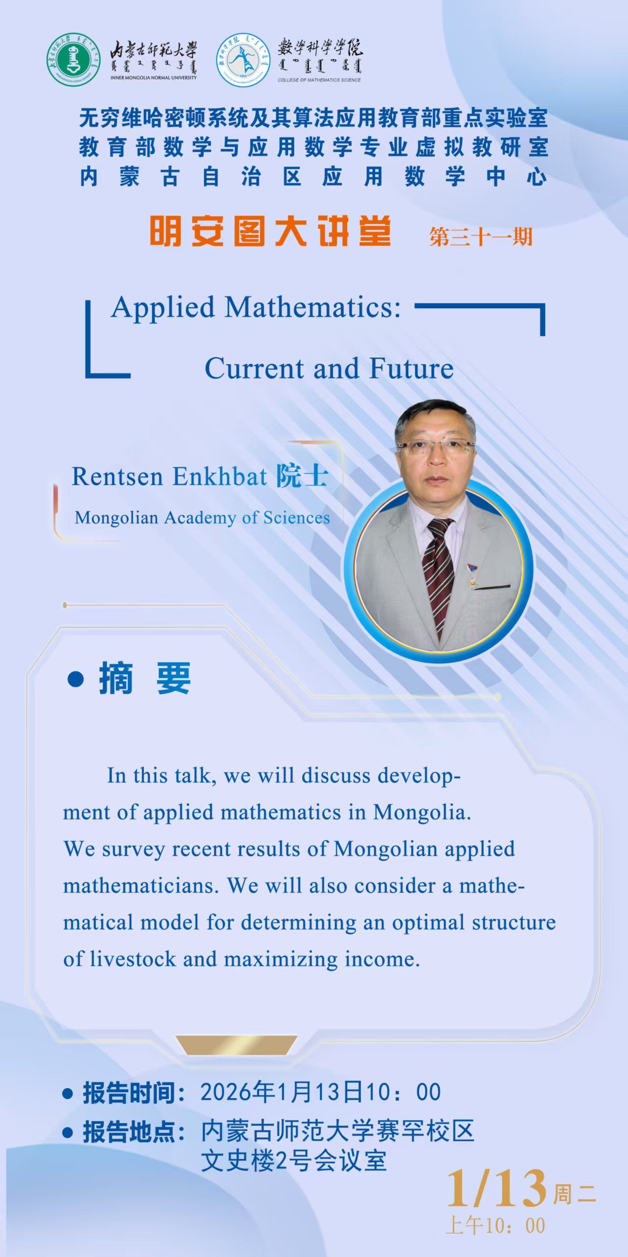 明安图大讲堂·预告(第三十一期) | Applied Mathematics:Current and Future