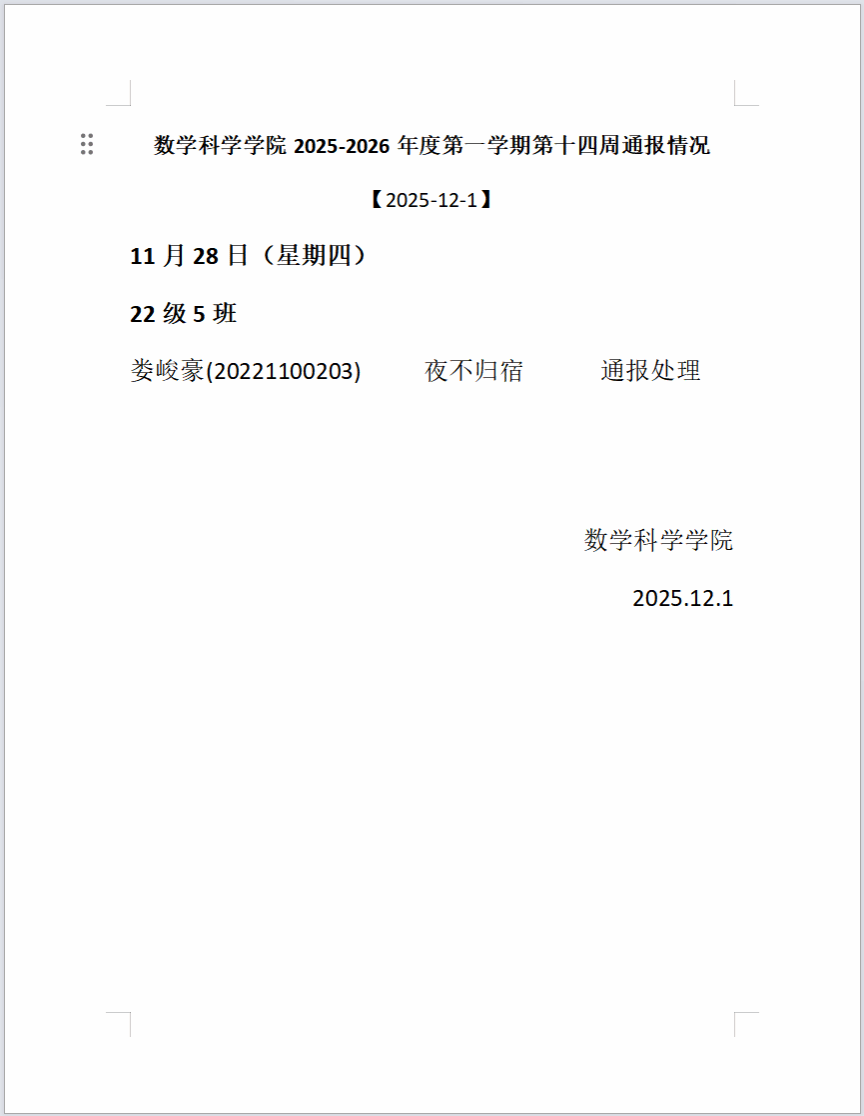 beat365官方网站2025-2026年度第一学期第十四周通报情况